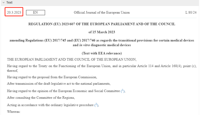 最后,該法案于 2023 年 3 月 15 日由聯合立法者簽署,并于2023年3月20日在官方公報(OJEU)上公布。自此,有關MDR過渡期的法案正式“生效”。