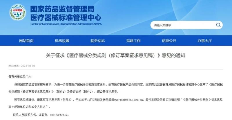 10月10日,國家藥監局醫療器械標管中心發布《醫療器械分類規則(修訂草案征求意見稿)》(以下簡稱《修訂草案》),并向社會公開征求意見。