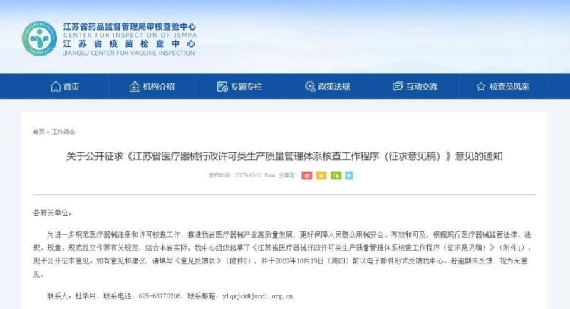 近日,江蘇省藥監局審核查驗中心發布《江蘇省醫療器械行政許可類生產質量管理體系核查工作程序(征求意見稿)》(以下簡稱《工作程序》),并向社會公開征求意見。