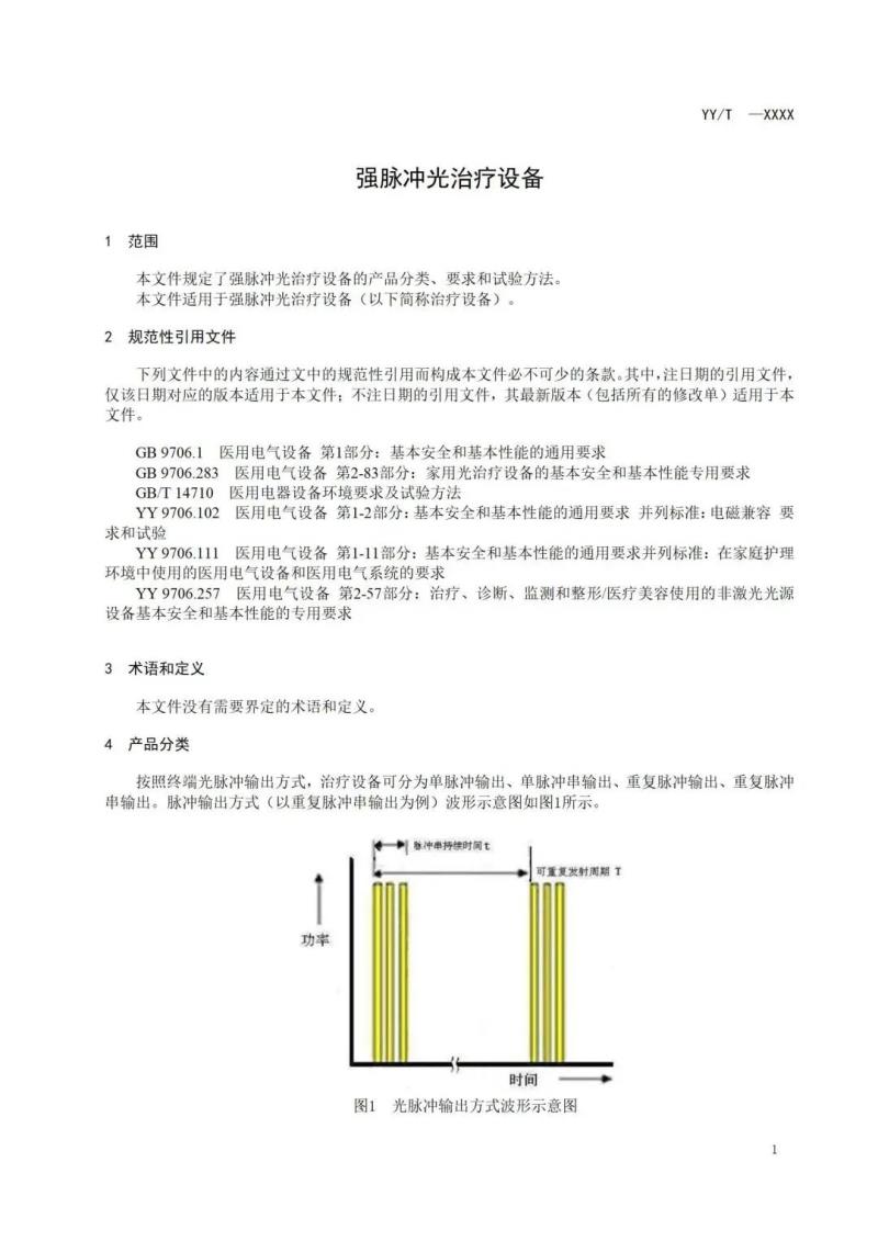 我們將其中《強脈沖光治療設備》標準草案轉載如下: