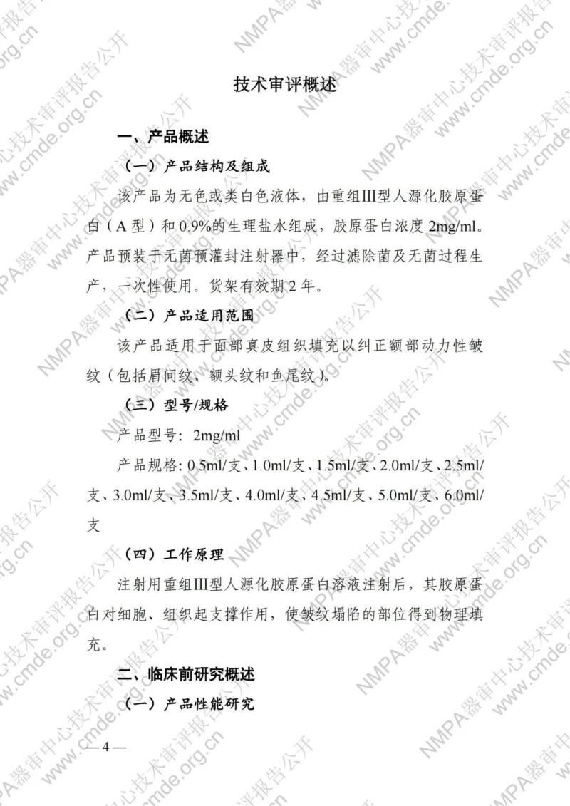 CMDE公開注射用重組Ⅲ型人源化膠原蛋白溶液審評(píng)報(bào)告