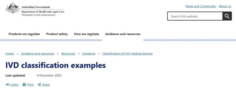 跟國內分類規則不同,澳大利亞TGA根據醫療器械風險等級從低到高,將醫療器械分為Ⅰ類、Ⅱa類、Ⅱb類、Ⅲ類,體外診斷試劑則分為1、2、3、4類。