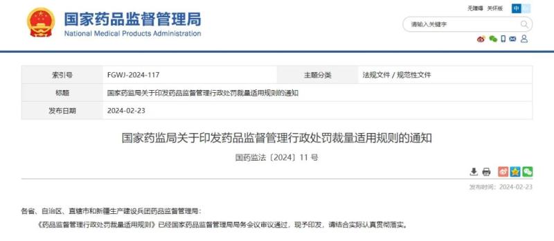 近日,國家藥監局發布《藥品監督管理行政處罰裁量適用規則》(以下簡稱《規則》),并宣布自2024年8月1日起施行。