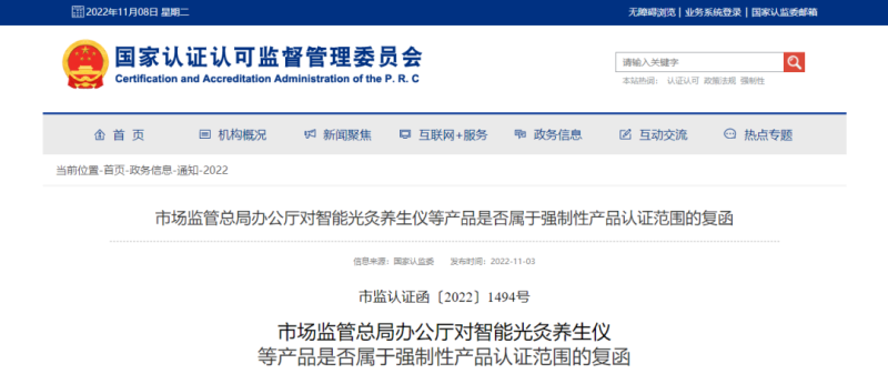 近日,河南省市場監管局向國家認證認可監督管理委員會(以下簡稱“認監委”)提出《關于智能光灸養生儀等6個商品是否屬于強制性產品認證范圍的請示》,認監委對此函復如下: