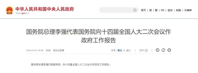 3月5日上午9時,李強總理向十四屆全國人大二次會議作政府工作報告。工作報告中提到的2024年政府工作十大任務如下: