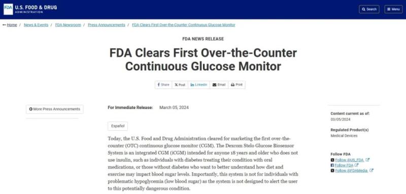 總的來說,首個OTC CGM的批準,提升了血糖監測類產品的適用性和普及率然而,相關制造商也應持續完善產品,以解決潛在的局限性,并應對不斷變化的監管環境。