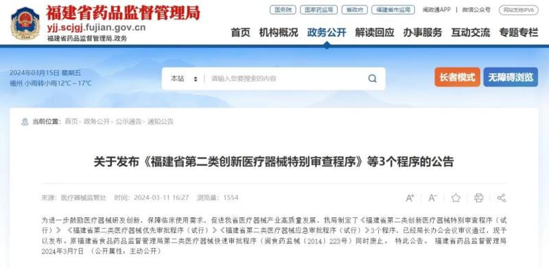 近日,福建省藥監局發布《福建省第二類創新醫療器械特別審查程序(試行)》《福建省第二類醫療器械優先審批程序(試行)》《福建省第二類醫療器械應急審批程序(試行)》3個程序。