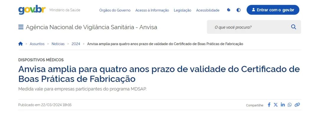 ※巴西Anvisa宣布:此情形下,BGMP證書有效期可延長至4年!