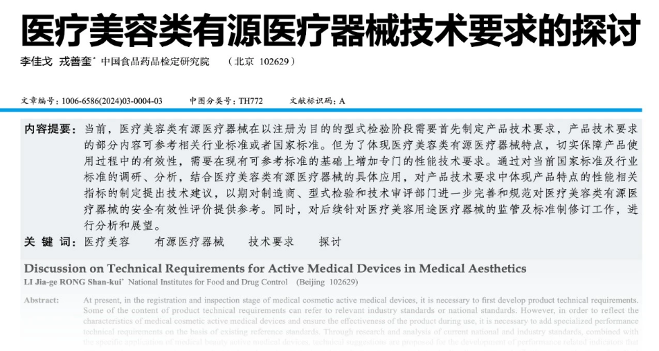 近期,《中國醫療器械信息雜志刊登了一篇文章《醫療美容類有源醫療器械技術要求的探討》,從市場趨勢、現有標準情況、體現產品臨床特點的技術指標研究、展望與技術探討等方面對有源醫美產品進行了探討,本期文章我們摘錄了其中部分內容跟大家進行簡單分享。