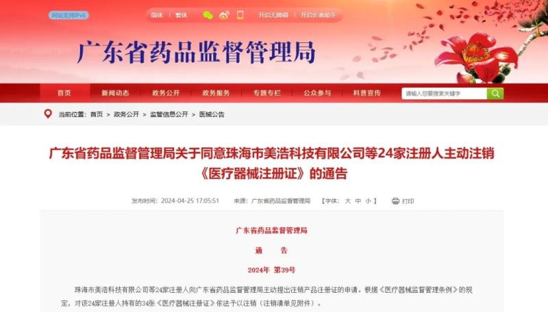 廣東藥監(jiān)局:以下21家企業(yè)已主動注銷其醫(yī)療器械注冊證!