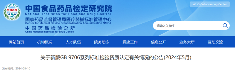 近日,中檢院發(fā)布通告:按照《國家藥監(jiān)局綜合司關(guān)于印發(fā)〈GB 9706.1-2020及配套并列標準、專用標準實施工作方案〉的通知》要求,為全面摸清底數(shù),統(tǒng)計了截至2024年5月6日,75個新版GB 9706系列標準檢驗資質(zhì)認定情況和GB 9706.1-2020、YY 9706.102-2021獲證機構(gòu)信息(詳見附表)。