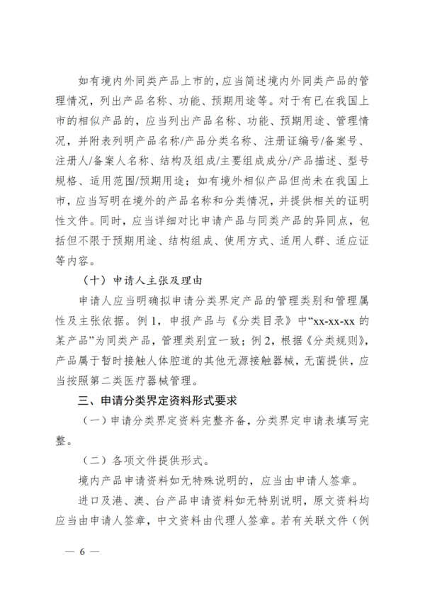 (四)對于管理類別存疑的境內(nèi)醫(yī)療器械分類界定申請,申請人在分類界定信息系統(tǒng)中提交至所在地省級藥品監(jiān)督管理部門。省級藥品監(jiān)督管理部門負(fù)責(zé)對行政區(qū)域內(nèi)申請人提出的產(chǎn)品分類界定申請進(jìn)行審查,根據(jù)《條例》《分類規(guī)則》、相關(guān)分類界定指導(dǎo)原則及《分類目錄》等能夠明確判定產(chǎn)品管理類別的,通過分類界定信息系統(tǒng)將分類界定結(jié)果告知申請人;難以明確判定產(chǎn)品管理類別的,提出預(yù)分類界定意見,并通過分類界定信息系統(tǒng)報器械標(biāo)管中心。
