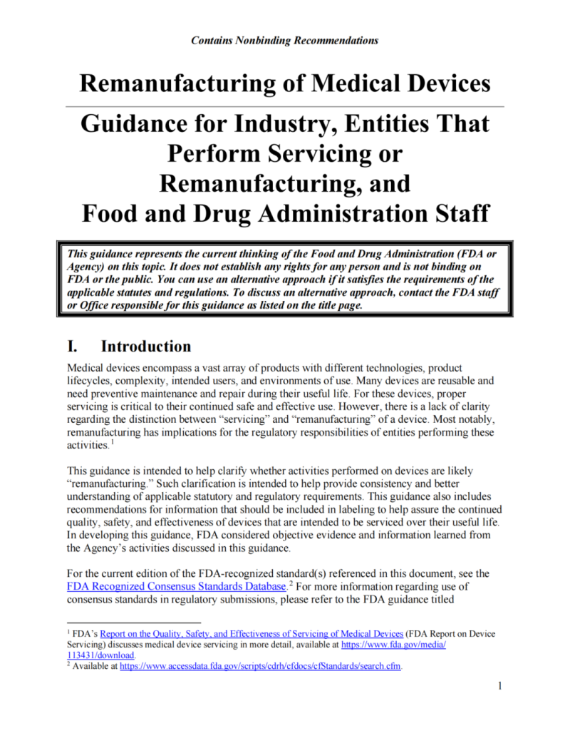 簡而言之,再制造是指對器械的性能、安全規格或其預期用途進行重大更改,將器械與合法銷售的設備更改為FDA批準或授權的設備。