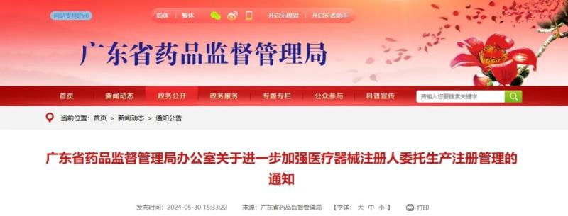 5月30日,廣東藥監局發布《關于進一步加強醫療器械注冊人委托生產注冊管理的通知》,具體事項如下: