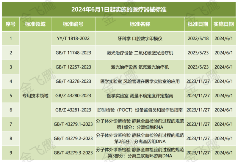6月第一個工作日,又來跟大家盤點一波醫療器械標準實施動態:自2024年6月1日起正式實施的共有9項醫療器械標準,其中包括YY/T 1818-2022《牙科學 口腔數字印模儀》、GB/T 11748-2023《激光治療設備 二氧化碳激光治療機》、GB/T 12257-2023《激光治療設備 氦氖激光治療機》等,具體明細如下: