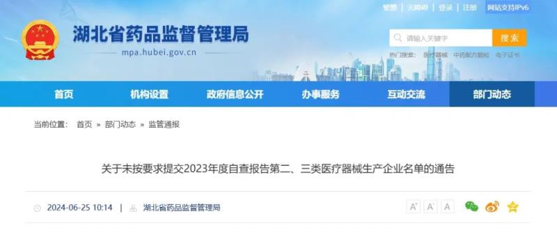 湖北藥監(jiān)局通報(bào)21家未提交2023年度自查報(bào)告醫(yī)械企業(yè)