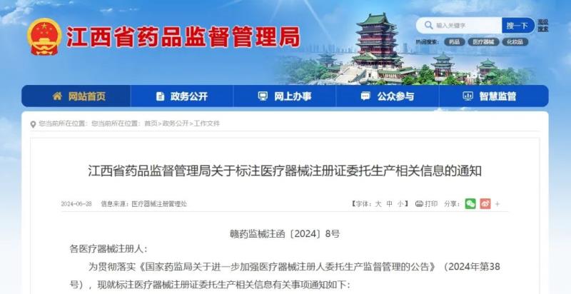 近日,繼江蘇省、湖北省、廣東省、湖南省、廣西壯族自治區(qū)、云南省、吉林省(具體政策可點擊右側鏈接回顧→醫(yī)療器械委托生產(chǎn)信息標注)后,江西省藥監(jiān)局也發(fā)布了《關于標注醫(yī)療器械注冊證委托生產(chǎn)相關信息的通知》,相關事項具體如下: