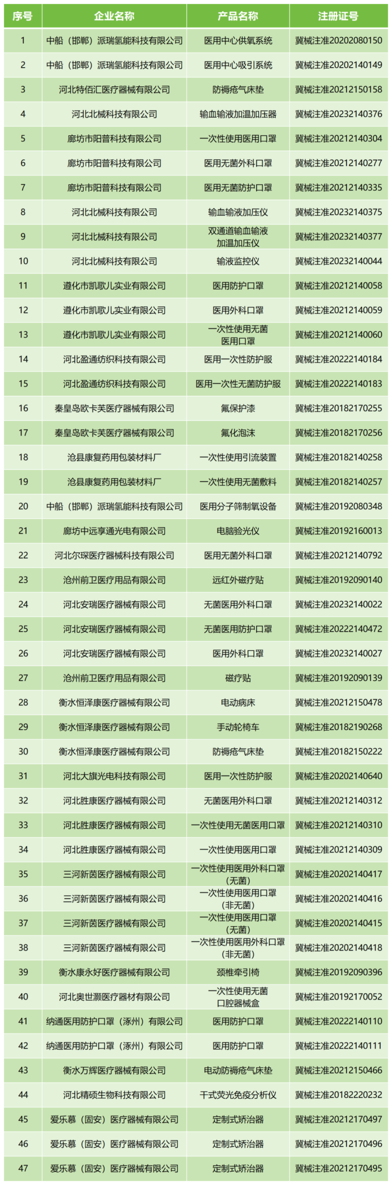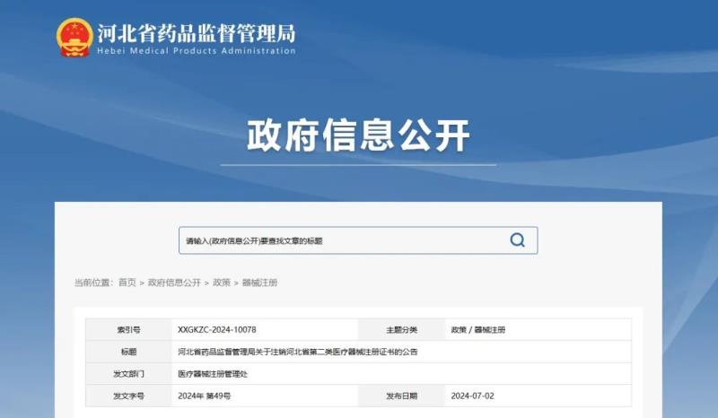 7月2日,河北藥監局發布公告稱,按照《中華人民共和國行政許可法》《醫療器械監督管理條例》有關規定,根據企業申請,該局依法注銷了醫用中心供氧系統、一次性使用無菌敷料、醫用分子篩制氧設備、定制式矯治器等47個第二類醫療器械注冊證書,具體明細如下: