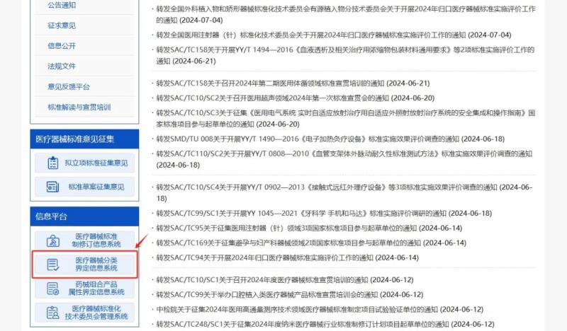 第三步,在頁面左下角“信息平臺”中進(jìn)入“醫(yī)療器械分類界定信息系統(tǒng)”;