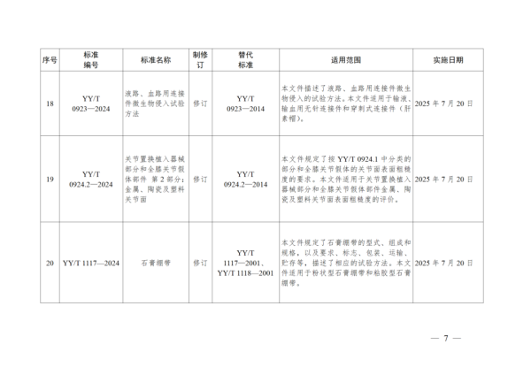 7月10日,國家藥監局發布YY/T 1936-2024《定制式固定義齒》、YY/T 1937-2024《定制式活動義齒》、YY/T 1932-2024《牙科學 膜片式無托槽正畸矯治器》等36項醫療器械行業標準,其中24項為修訂,12項為修訂,最早自2025年7月20日起實施,具體清單如下: