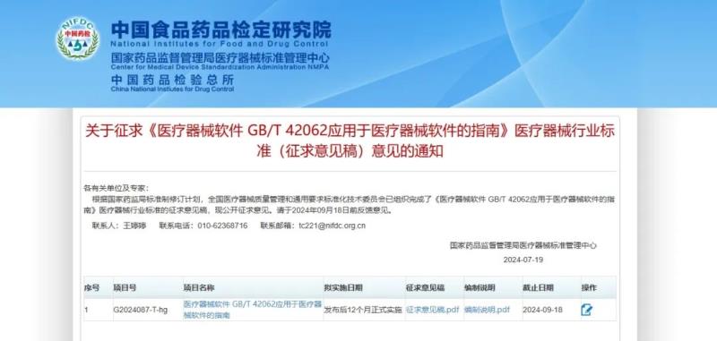 《GB/T 42062應用于醫療器械軟件的指南》征求意見中