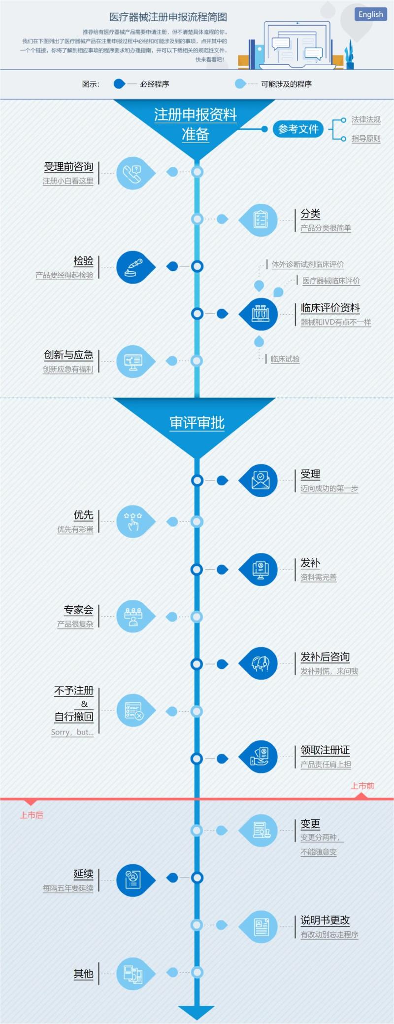 眾所周知,醫療器械注冊申報是一項較為繁瑣的工作,需要經歷產品送檢注冊資料編寫&提交審評發補等諸多環節,且每一環節都有相應注意事項,本期文章我們就轉載了國家藥監局器審中心公開的《醫療器械注冊申報流程簡圖,以供大家參考~