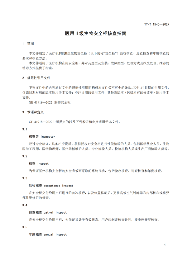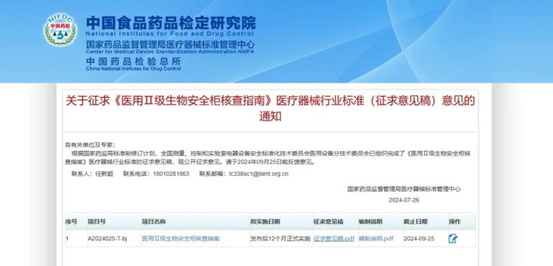 新版《醫用Ⅱ級生物安全柜核查指南》征求意見中