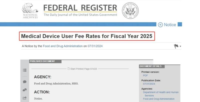美國(guó)當(dāng)?shù)貢r(shí)間7月31日,美國(guó)聯(lián)邦公報(bào)(Federal Register)公布FDA 2025財(cái)政年度(2024年10月1日至2025年9月30日)醫(yī)療器械收費(fèi)標(biāo)準(zhǔn)→又雙叒叕漲了!