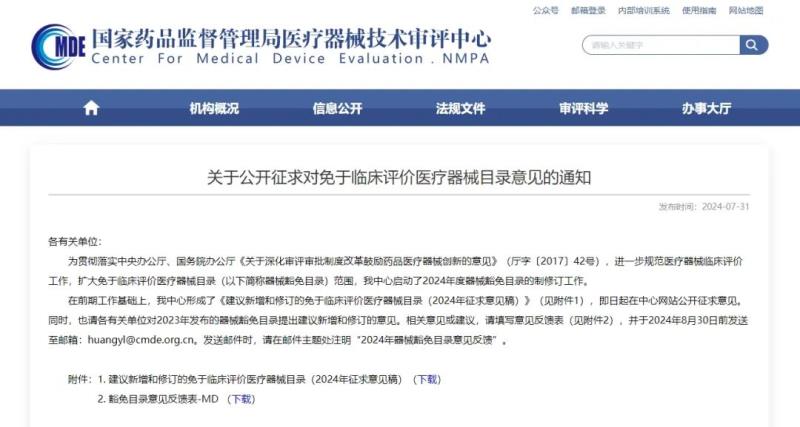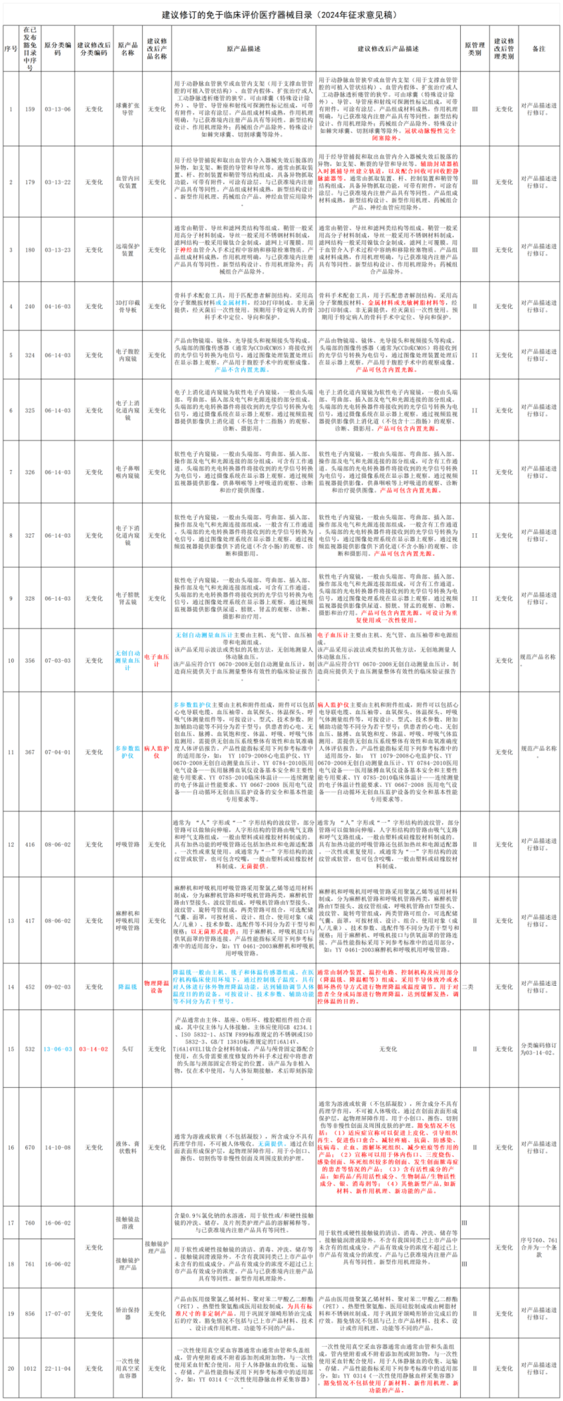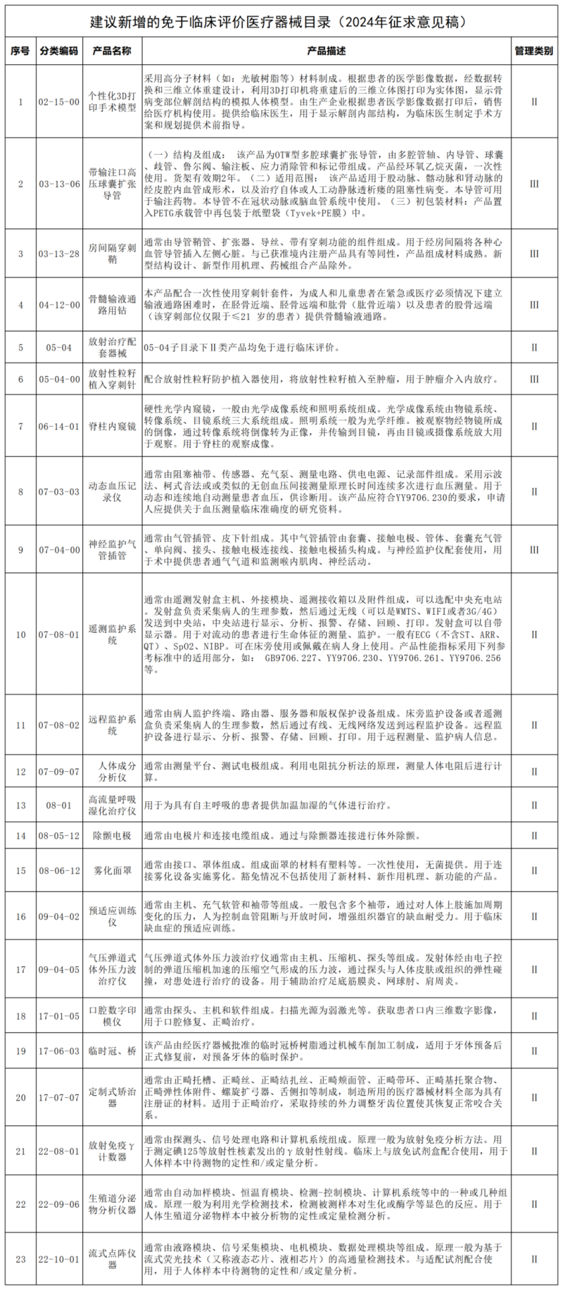 7月31日,國家藥監局器審中心發布《建議新增和修訂的免于臨床評價醫療器械目錄(2024年征求意見稿)》,并向社會公開征求意見。