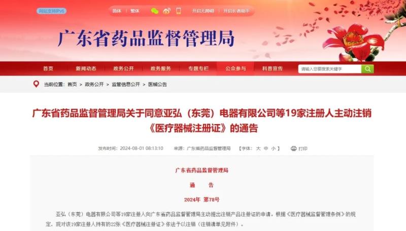廣東藥監局:以下19家企業已主動注銷其醫療器械注冊證!