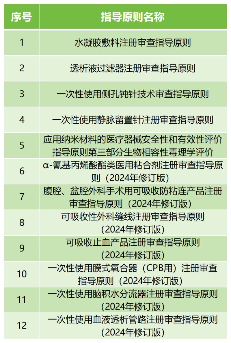 8月12日,國家藥監局器審中心發布《水凝膠敷料注冊審查指導原則》《透析液過濾器注冊審查指導原則》《一次性使用靜脈留置針注冊審查指導原則》等12項醫療器械注冊審查指導原則,具體清單如下: