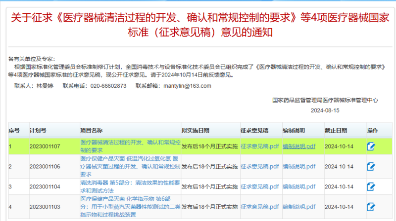 8月14日,國家藥監局醫療器械標準管理中心發布幾則關于征求醫療器械國家標準意見的通知,通知顯示,近期共有4項標準形成了征求意見稿。