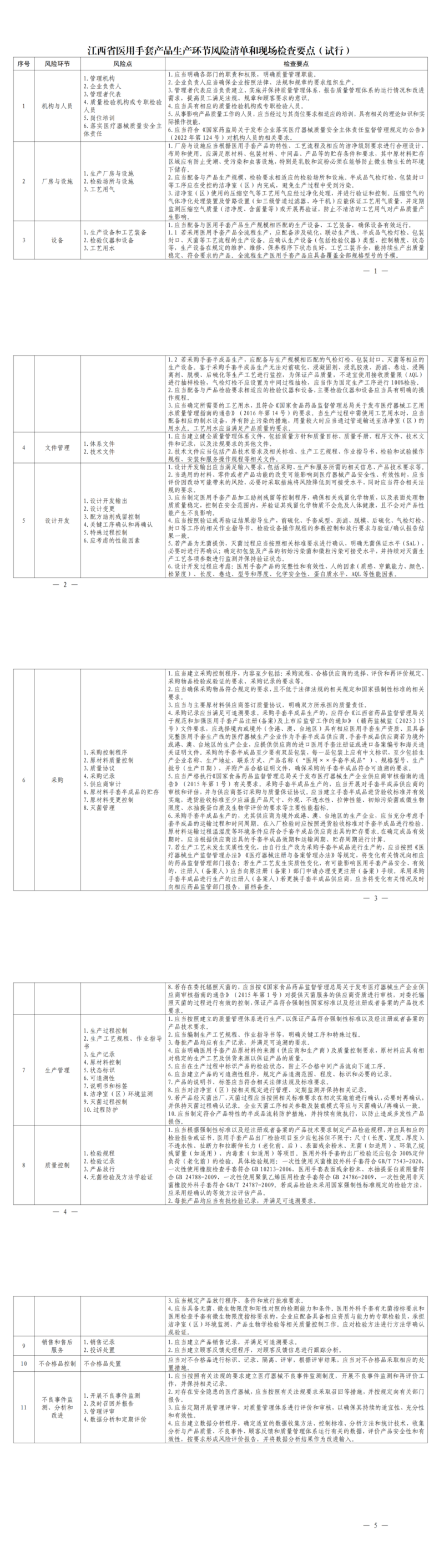 8月14日,江西省藥監局發布《江西省醫用手套產品生產環節風險清單和現場檢查要點(試行)》(以下簡稱《檢查要點》),作為各級藥品監督管理部門開展醫用手套產品監督檢查工作(包括質量管理體系審查、專項監督檢查、日常監督檢查等)和注冊核查工作的執行依據。