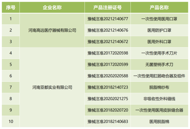 近日,河南省藥監(jiān)局發(fā)布公告稱,按照《醫(yī)療器械監(jiān)督管理?xiàng)l例》規(guī)定,根據(jù)企業(yè)申請(qǐng),該局已注銷河南高遠(yuǎn)醫(yī)療器械有限公司、河南亞都實(shí)業(yè)有限公司2家企業(yè)共10個(gè)產(chǎn)品的醫(yī)療器械注冊(cè)證,具體明細(xì)如下:
