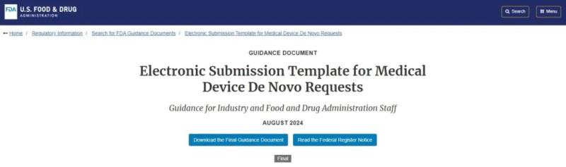FDA:自2025年10月1日起,De Novo申請(qǐng)需用eSTAR提交