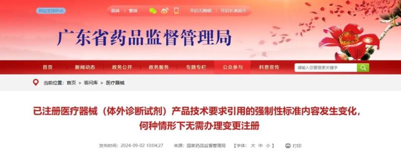 上述兩種情形下,產品技術要求不發生變化或者僅更新引用的標準編號和/或年代號無需辦理變更注冊。
