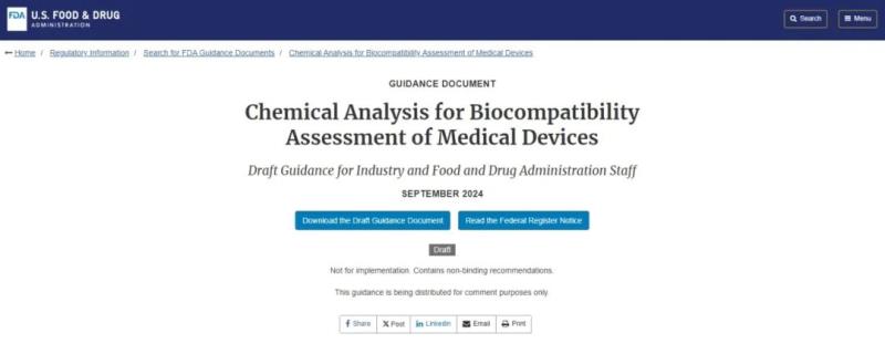 FDA動態丨醫療器械化學表征評估指南草案發布