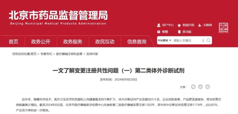 近年來,隨著科學技術、醫療衛生經濟的發展和人民健康需求的不斷擴大,體外診斷試劑產業發展動力十足,企業活躍度高、產品更迭速度快,帶動變更注冊數量隨之增加。近日,北京市藥監局梳理了2024年變更注冊審評發補關注點,并對常見的典型問題進行了分析解答,我們將其轉載如下: