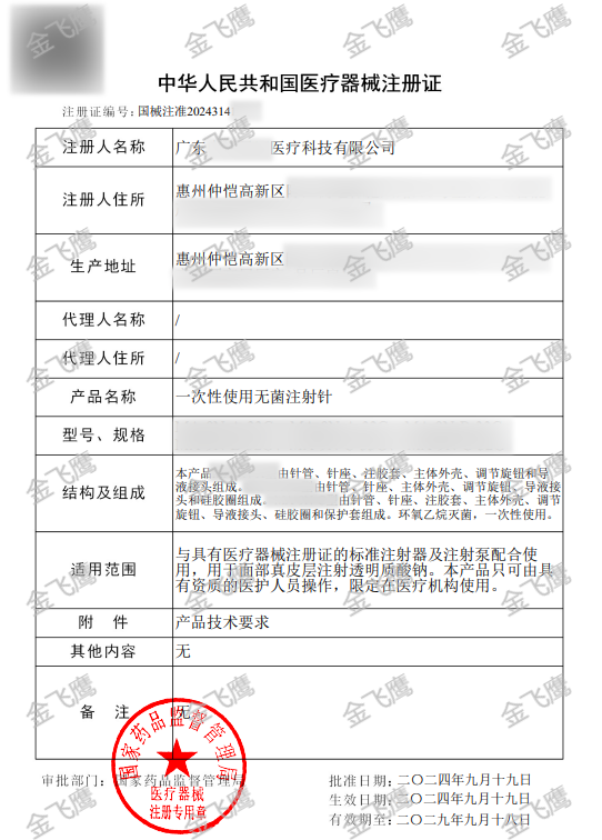案例精選丨金飛鷹成功輔導企業完成一次性使用無菌注射針取證