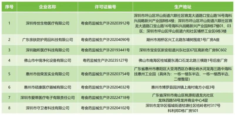 廣東藥監局:以下8家企業已主動注銷其醫療器械生產許可證!