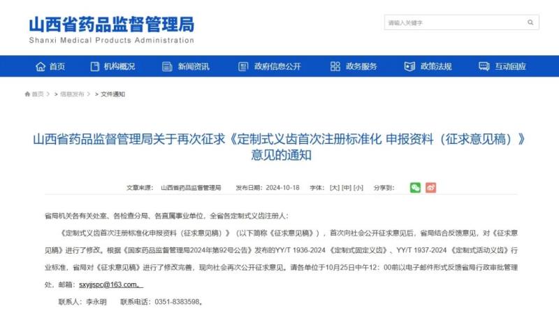 近日,山西省藥監(jiān)局在原有《定制式義齒首次注冊標(biāo)準(zhǔn)化申報資料(征求意見稿)》基礎(chǔ)上進行修改完善,附件共包括首次注冊申報資料及要求、符合性聲明、風(fēng)險分析資料、產(chǎn)品技術(shù)要求、說明書及標(biāo)簽樣稿等,并再次向社會公開征求意見。
