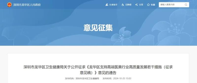 近日,深圳市龍華區(qū)衛(wèi)生健康局發(fā)布《龍華區(qū)支持高端醫(yī)美行業(yè)高質(zhì)量發(fā)展若干措施(征求意見稿)》(以下簡稱《若干措施》),并向社會公開征求意見。
