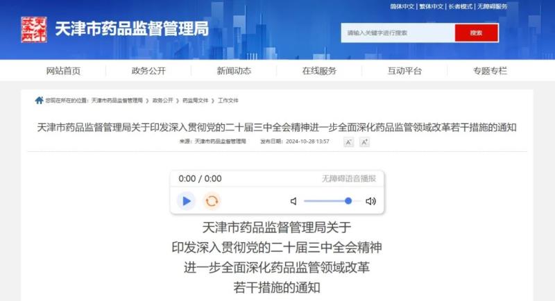 近日,天津市藥監(jiān)局發(fā)布《深入貫徹黨的二十屆三中全會(huì)精神進(jìn)一步全面深化藥品監(jiān)管領(lǐng)域改革若干措施的通知》(以下簡(jiǎn)稱《若干措施》),以落實(shí)天津市委十二屆六次全會(huì)和國(guó)家藥監(jiān)局全面深化改革部署要求,全鏈條支持生物醫(yī)藥產(chǎn)業(yè)高質(zhì)量發(fā)展,全生命周期保障藥品高水平安全,全方位加強(qiáng)高效能監(jiān)管和高素質(zhì)專業(yè)化干部隊(duì)伍建設(shè)。《若干措施》以更好保護(hù)和促進(jìn)人民健康為目標(biāo),共制定4個(gè)方面27條深化藥品監(jiān)管領(lǐng)域改革具體措施。