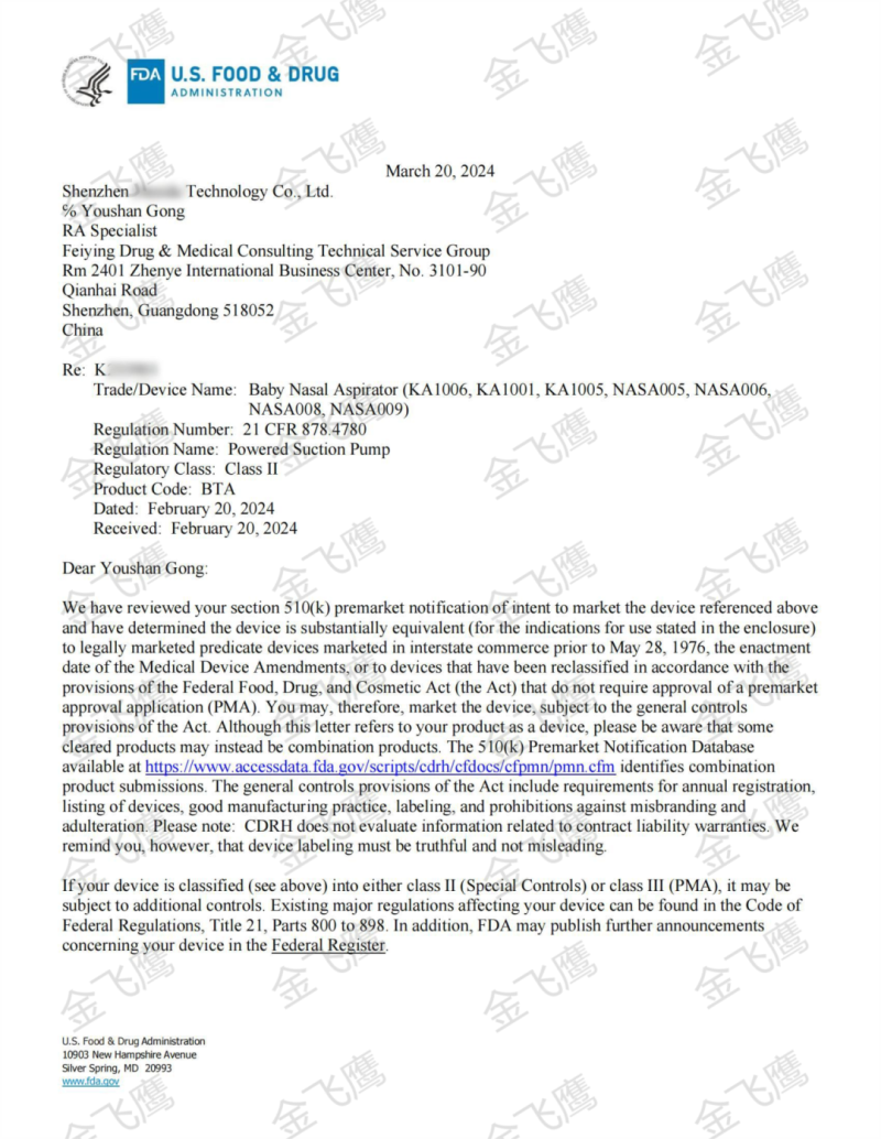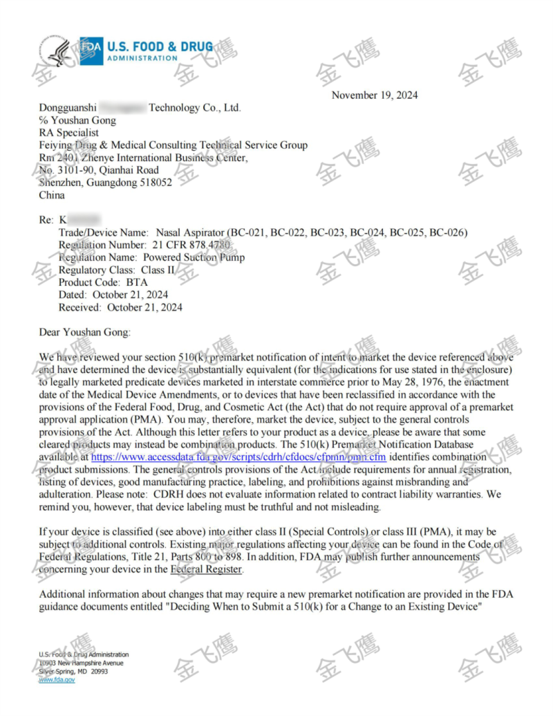 案例精選丨金飛鷹成功輔導企業獲批【吸鼻器】510(k)