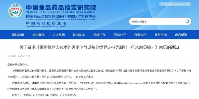 近日,國家藥監局醫療器械標準管理中心發布《采用機器人技術的醫用電氣設備分類界定指導原則(征求意見稿)》(以下簡稱《指導原則》),并向社會公開征求意見。
