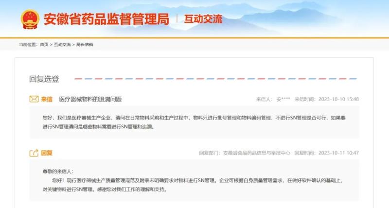 根據安徽省藥監局的答復,現行醫療器械生產質量管理規范及附錄未明確要求對物料進行SN管理。企業可根據自身質量管理需求,在做好軟件確認的基礎上,對關鍵物料進行SN管理。