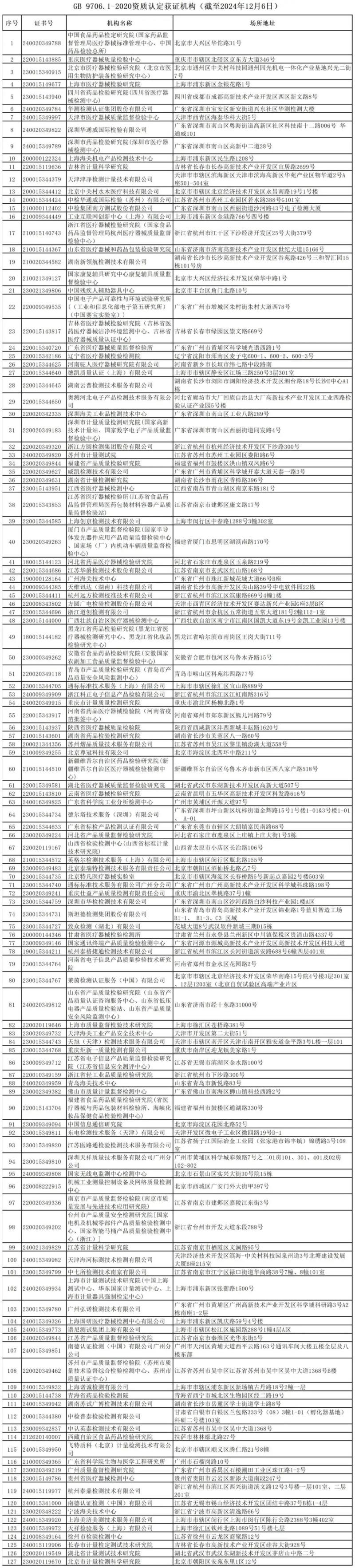 ↑ GB 9706.1-2020資質認定獲證機構明細