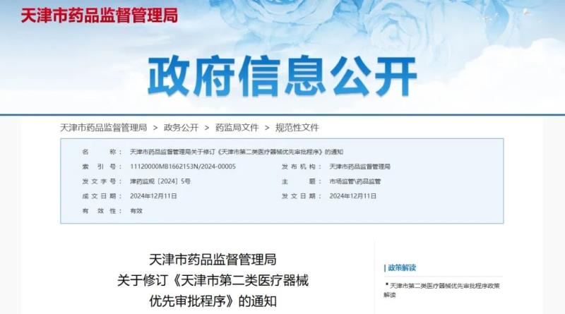 近日,天津市藥監(jiān)局發(fā)布《天津市第二類醫(yī)療器械優(yōu)先審批程序》(修訂版)(以下簡(jiǎn)稱《程序》),其中第十五條提到,對(duì)于符合下列情形之一的天津市第二類醫(yī)療器械產(chǎn)品,納入天津市醫(yī)療器械鼓勵(lì)清單,參照本程序時(shí)限要求開(kāi)展優(yōu)先審評(píng)、優(yōu)先核查及優(yōu)先審批,鼓勵(lì)醫(yī)療器械新技術(shù)研發(fā)與應(yīng)用: