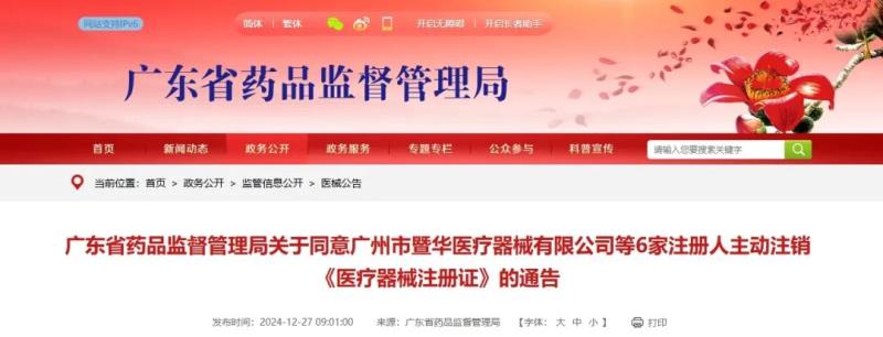 廣東藥監(jiān)局:以下6家企業(yè)已主動注銷其醫(yī)療器械注冊證!