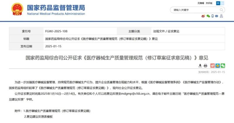 1月15日,國家藥監(jiān)局發(fā)布《醫(yī)療器械生產(chǎn)質(zhì)量管理規(guī)范(修訂草案征求意見稿)》(以下簡稱“新版《規(guī)范》),并向社會公開征求意見。